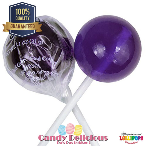 Een unieke lolly met een Druiven smaak gemaakt door “Original Gourmet Lollipops”