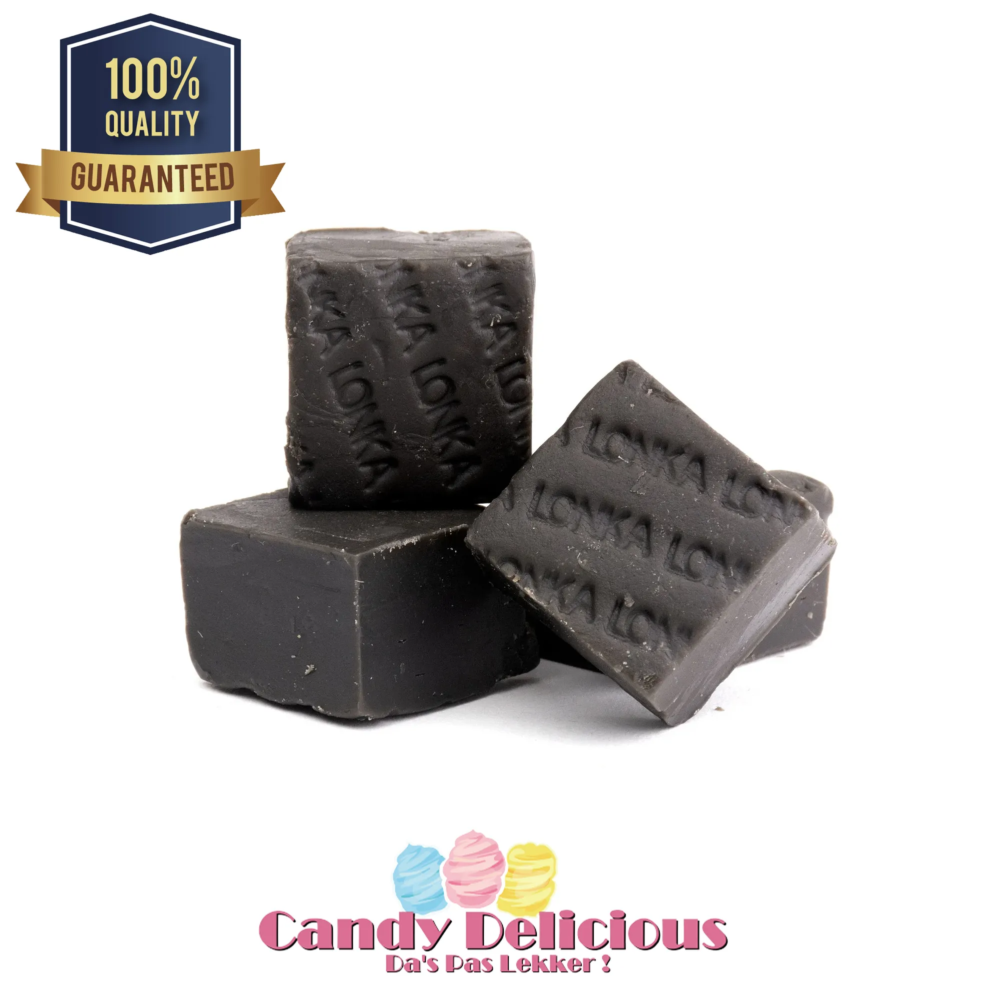Ingrediënten: Suiker, glucosestroop, plantaardige vetten (palm, kokos), magere melkpoeder, zoethoutwortelextract (1,7%), zout, emulgator (sojalecithine), kleurstof (E153), natuurlijk