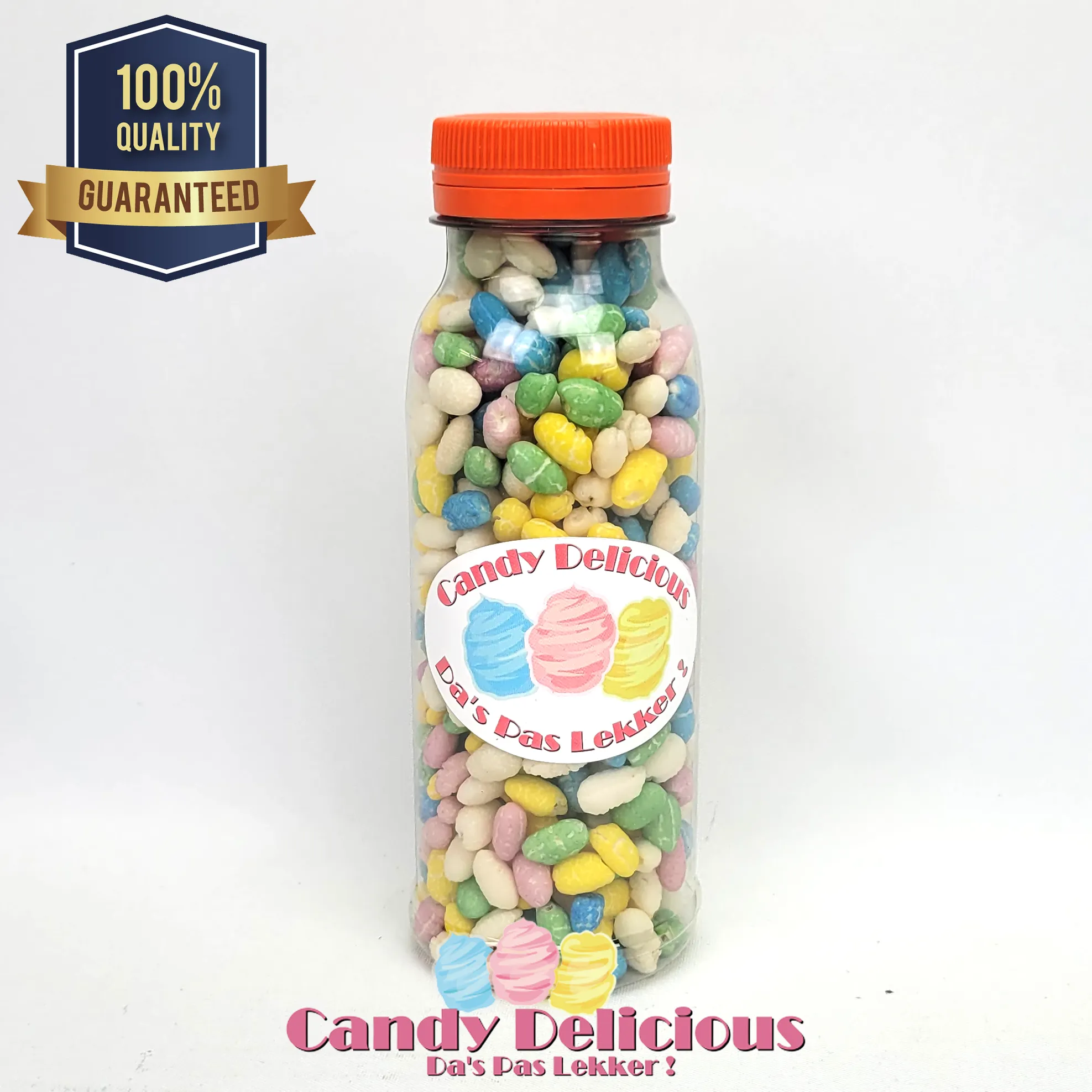 Een flesje gevuld met Manna – oftewel gekleurde gepofte rijst – is een vrolijke, eenvoudige en betaalbare traktatie die bij iedereen in de smaak valt. Door de bonte kleuren ziet het er meteen feestelijk uit, en het knapperige snoepgoed is geliefd bij zowel kinderen als volwassenen. Ideaal voor verjaardagen, feestjes of als traktatie op school.