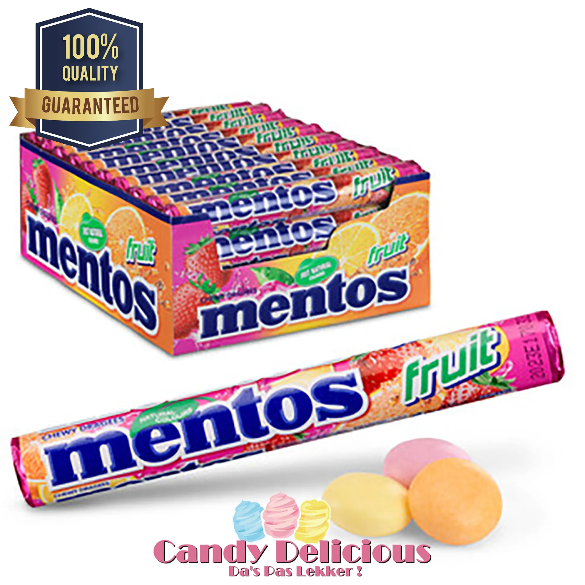 Mentos Fruit is een populaire snoeprol die wereldwijd geliefd is vanwege zijn unieke combinatie van een zachte binnenkant en een krokante buitenkant. De snoepjes zijn verpakt in een handige rol, waardoor ze makkelijk mee te nemen zijn voor onderweg, op school, op kantoor of gewoon thuis.