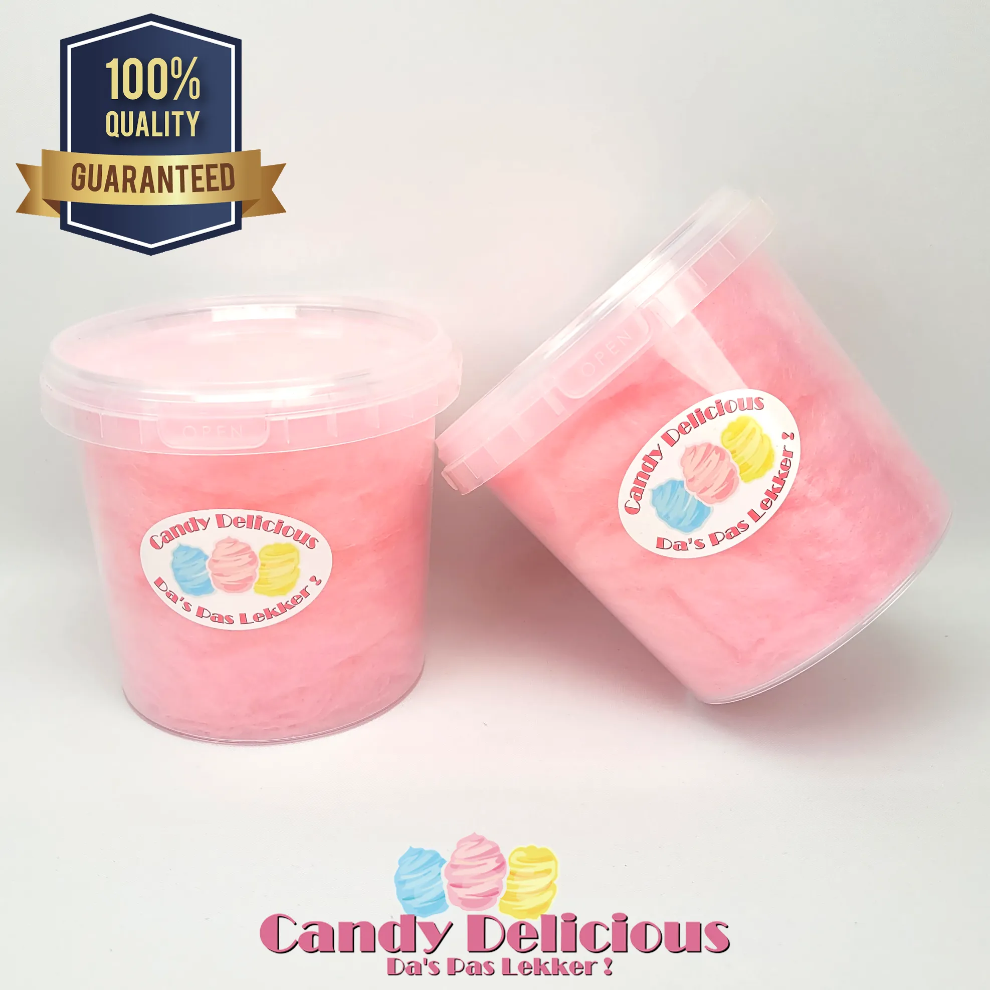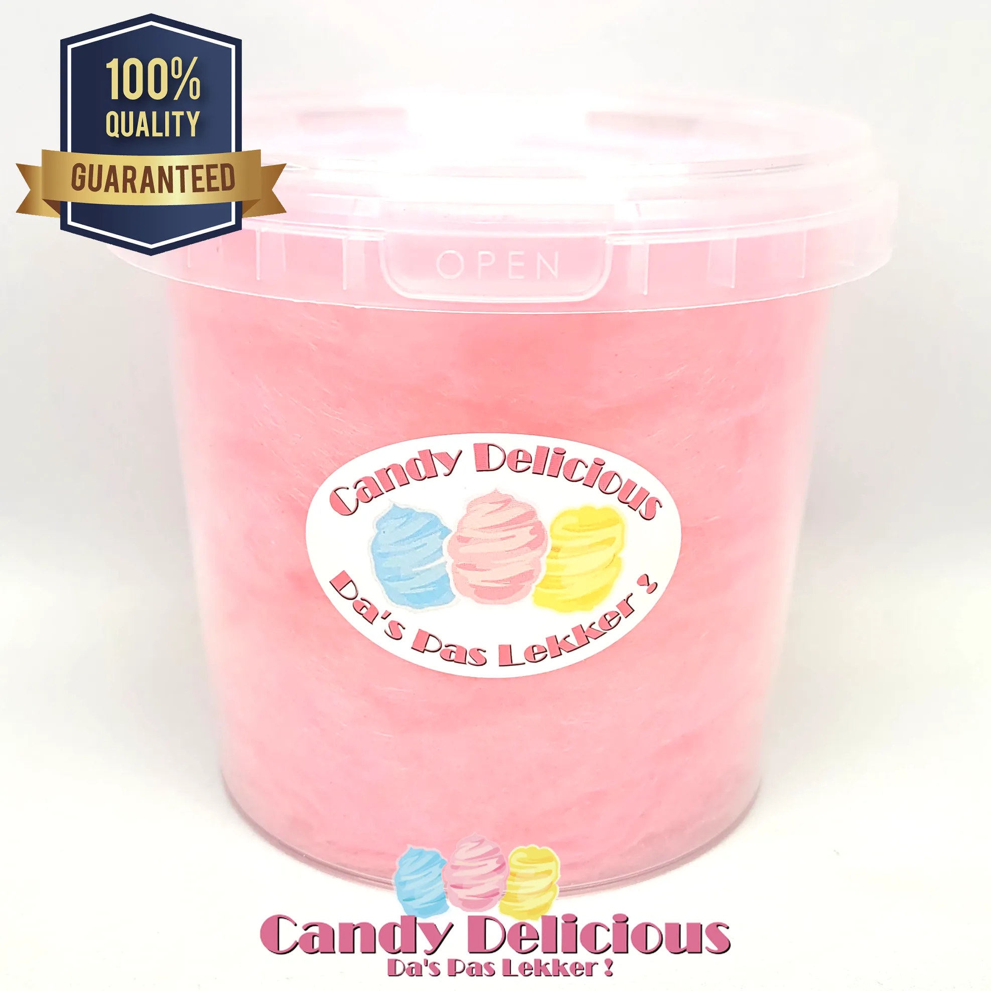 Onze suikerspin wordt verpakt in een stevige, hersluitbare emmer van 1 liter. Dit garandeert niet alleen optimale versheid, maar maakt het ook eenvoudig om te delen of te bewaren.