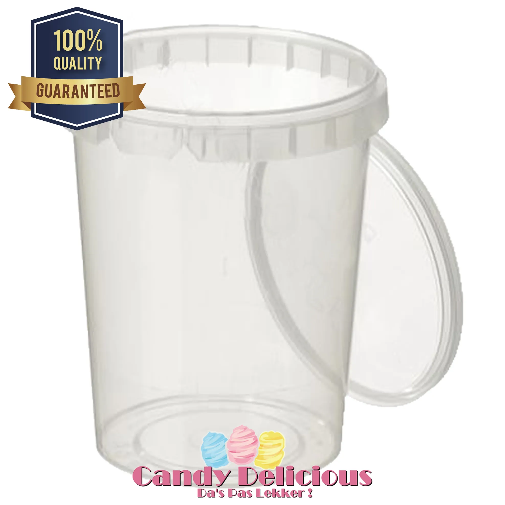 Het suikerspinemmertje is gemaakt van voedselveilig plastic en is voorzien van een goed afsluitbare deksel met veiligheidsclip. Dit voorkomt indringen van vocht, waardoor de suikerspin langer luchtig blijft. Door de transparantie is kleurrijke suikerspin goed zichtbaar en kun je deze versieren met vrolijke stickers of opdrukken.